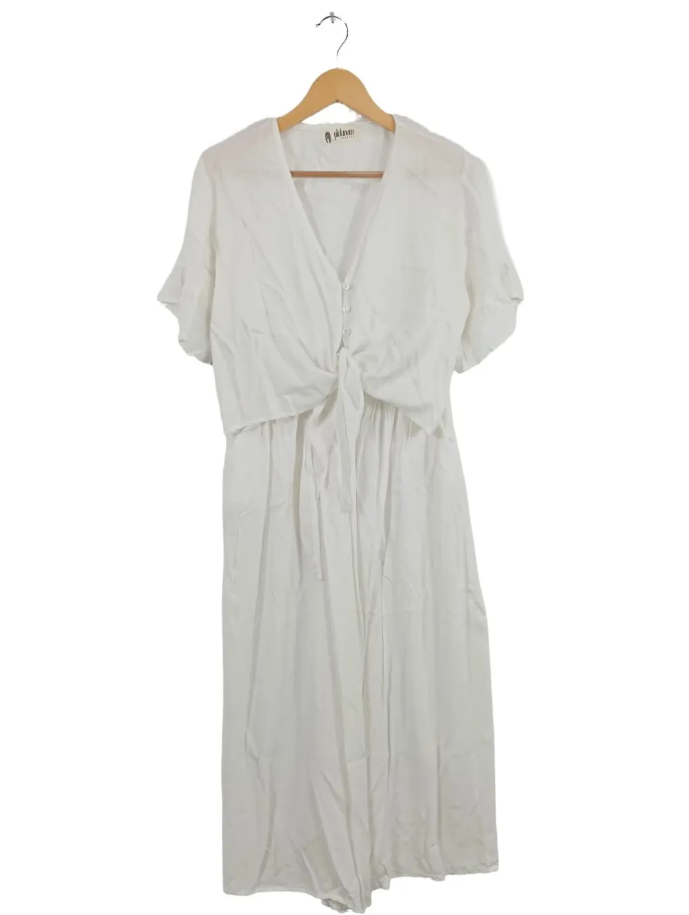 - Knopfleisten-Ausschnitt, V-Ausschnitt, Bund am Ärmelsaum, Knopfverschluss, Knotenverschluss, Casual-Look, Elegant, schlichter Stil