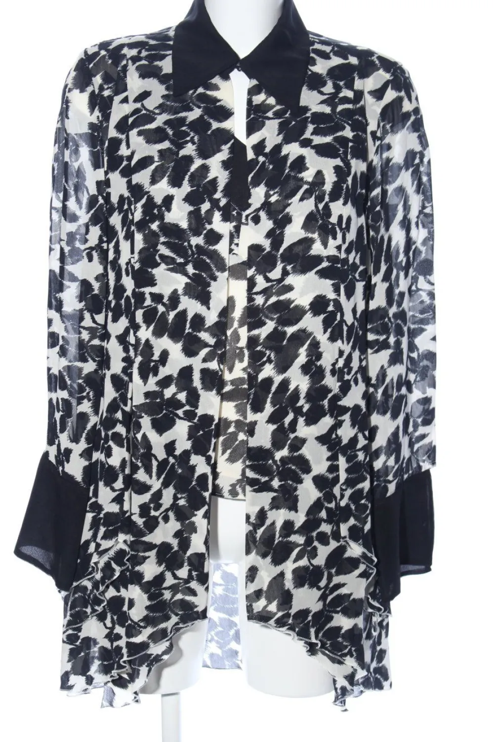 - Spaghettiträger, V-Ausschnitt, Hemdkragen, Knopfverschluss am Ärmelsaum, Haken- und Riegelverschluss, Allover-Druck, Casual-Look, Elegant, Street-Fashion-Look, Transparenz-Optik