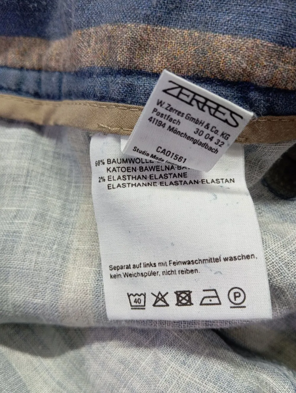 - Außenmaterial: 98% Baumwolle, 2% Elasthan