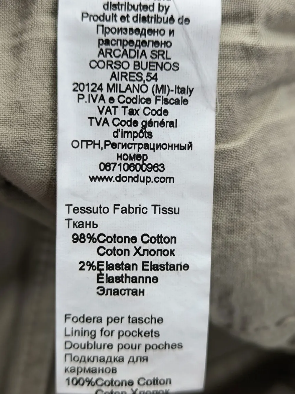 - Außenmaterial: 98% Baumwolle, 2% Elasthan