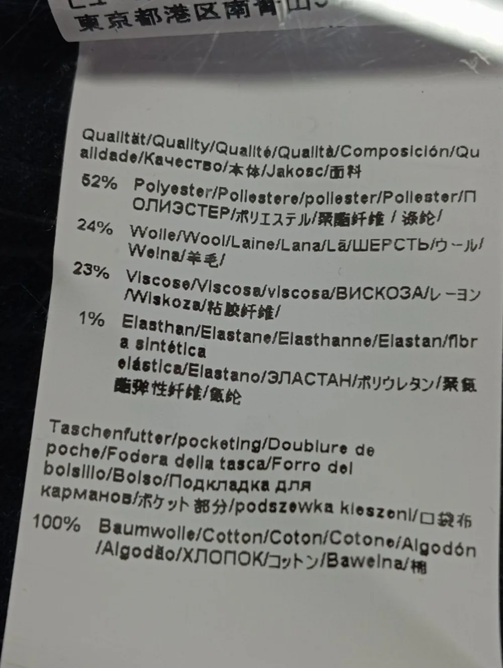 - Außenmaterial: 52% Polyester, 24% Wolle, 23% Viskose, 1% Elasthan