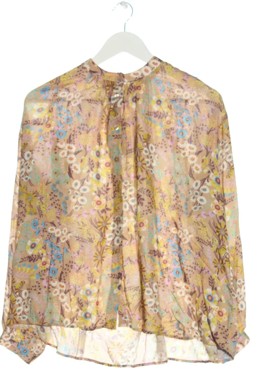 - Rundhalsausschnitt, Stehkragen, Knopfverschluss am Ärmelsaum, Knopfverschluss, Allover-Druck, Blumenmuster, Casual-Look, schlichter Stil