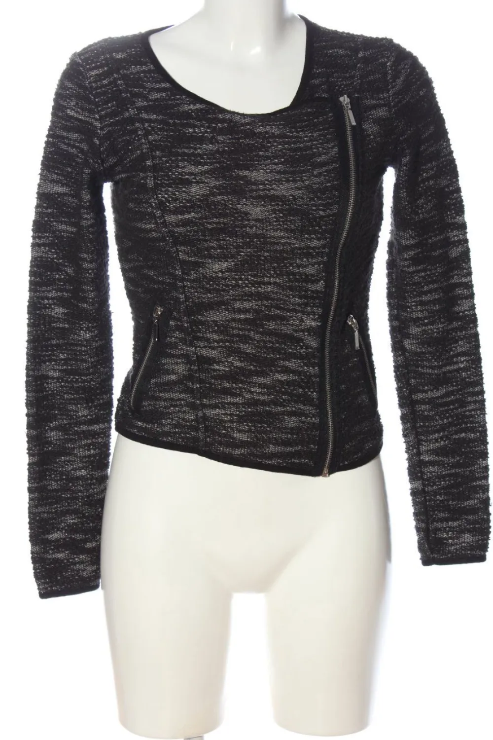 - Rundhalsausschnitt, Bund am Ärmelsaum, asymmetrischer Reißverschluss, Reißverschlusstaschen, meliert, Casual-Look, Elegant