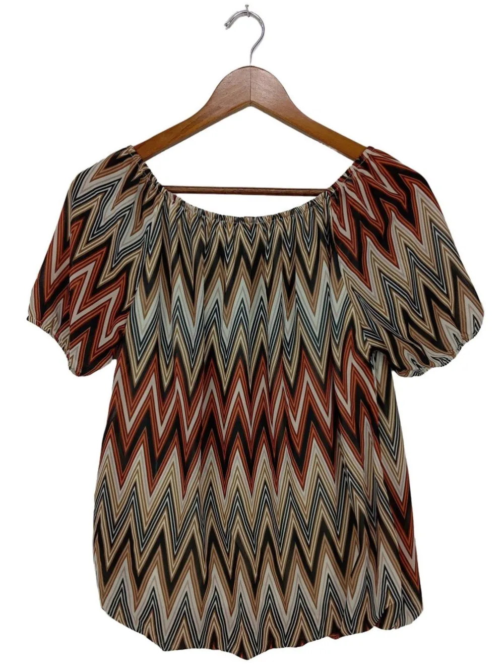 - Hailys Carmen-Bluse, rot-braun grafisches Muster