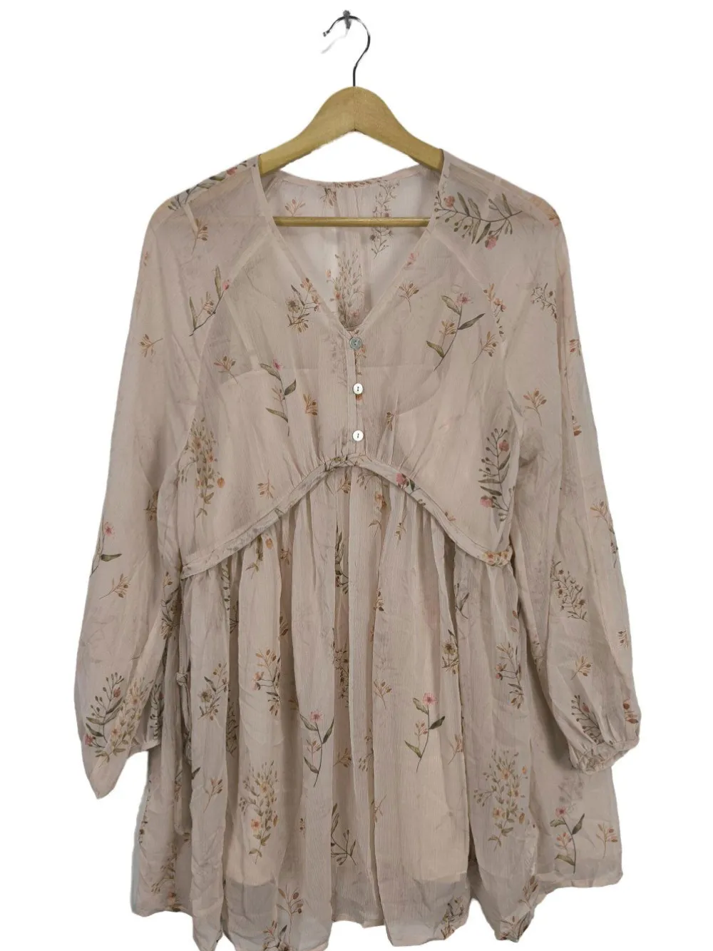 - V-Ausschnitt, Knopfverschluss, Allover-Druck, Blumenmuster, Casual-Look, Elegant