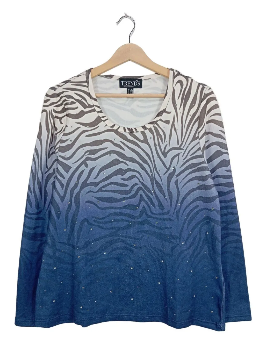 - Rundhalsausschnitt, Bund am Ärmelsaum, Allover-Druck, Farbverlauf, Casual-Look, schlichter Stil