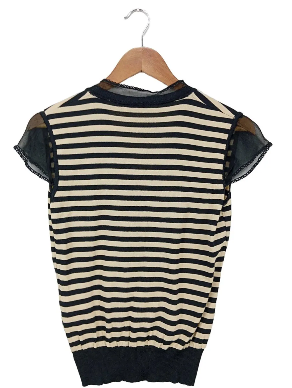 - Feinstrickpullunder, wollweiß-schwarz Streifenmuster