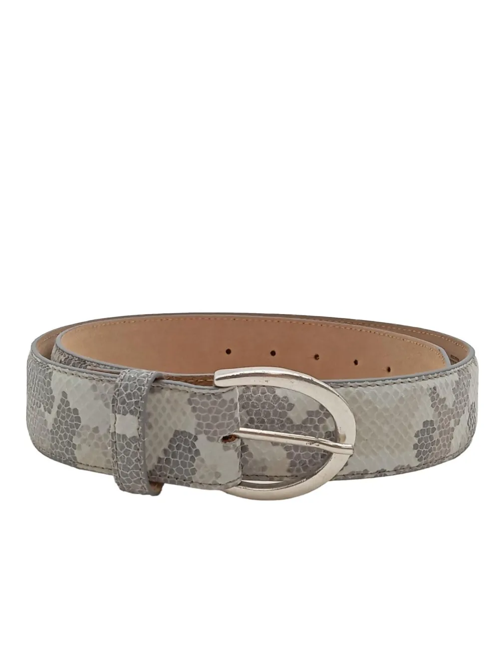 - VOLKER MAACK Ledergürtel, hellgrau Allover-Druck