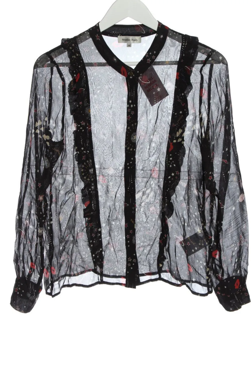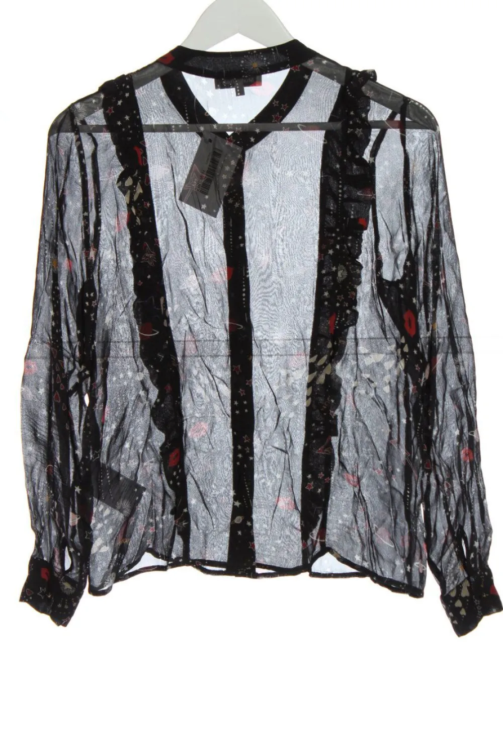 - Rundhalsausschnitt, Knopfverschluss am Ärmelsaum, Knopfverschluss, Allover-Druck, Mustermix, Casual-Look, Street-Fashion-Look, Transparenz-Optik