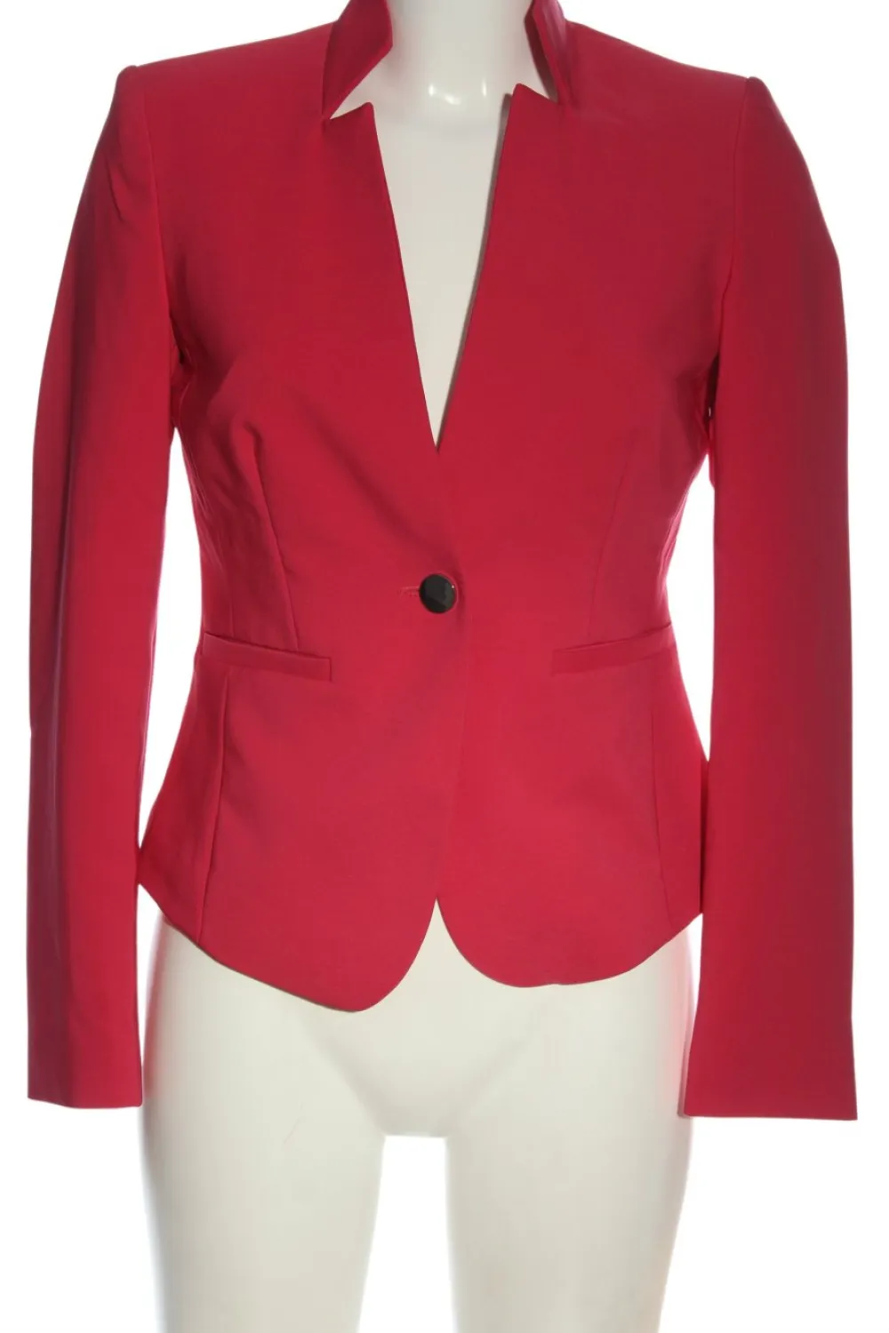 - tiefer V-Ausschnitt, Stehkragen, Knopfverschluss, Eingriffstaschen, Leistentaschen, Business-Look, Elegant, klassischer Stil