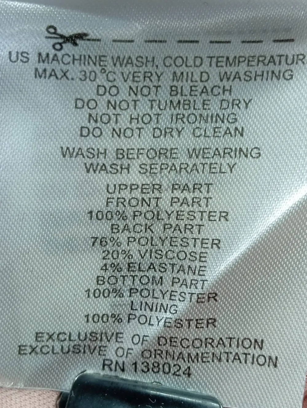- Zweites Außenmaterial: 76% Polyester, 20% Viskose, 4% Elasthan