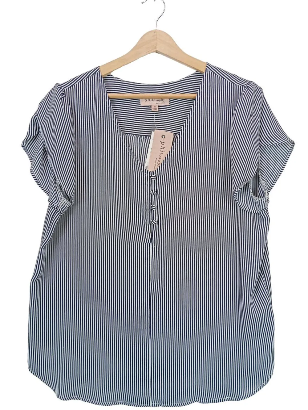 - PHILOSOPHY Kurzarm-Bluse, hellgrau Streifenmuster
