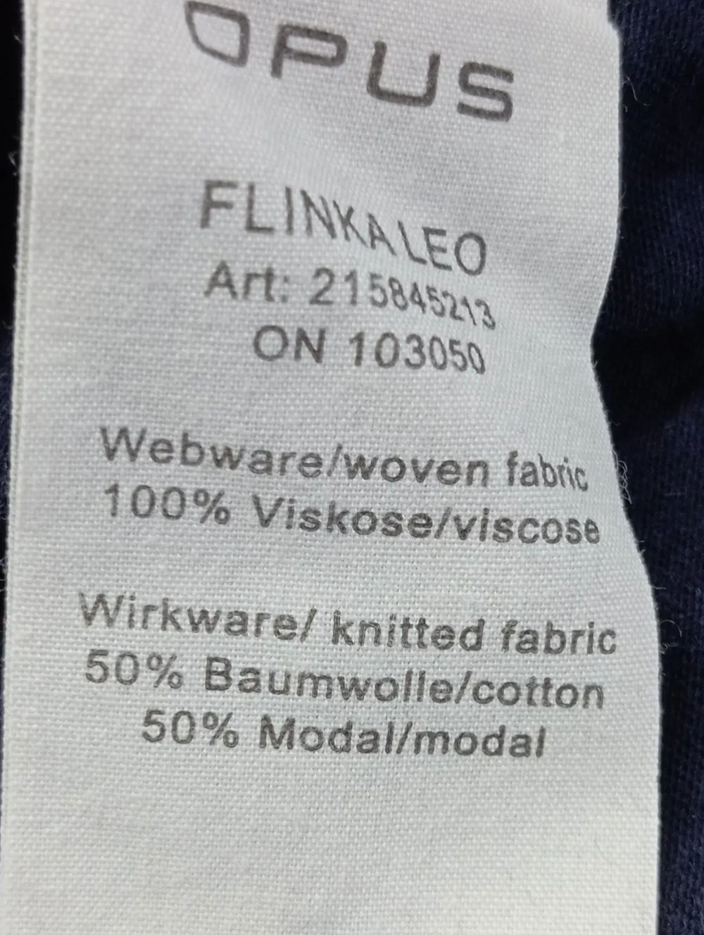 - Material (Futter): 50% Baumwolle, 50% Modal