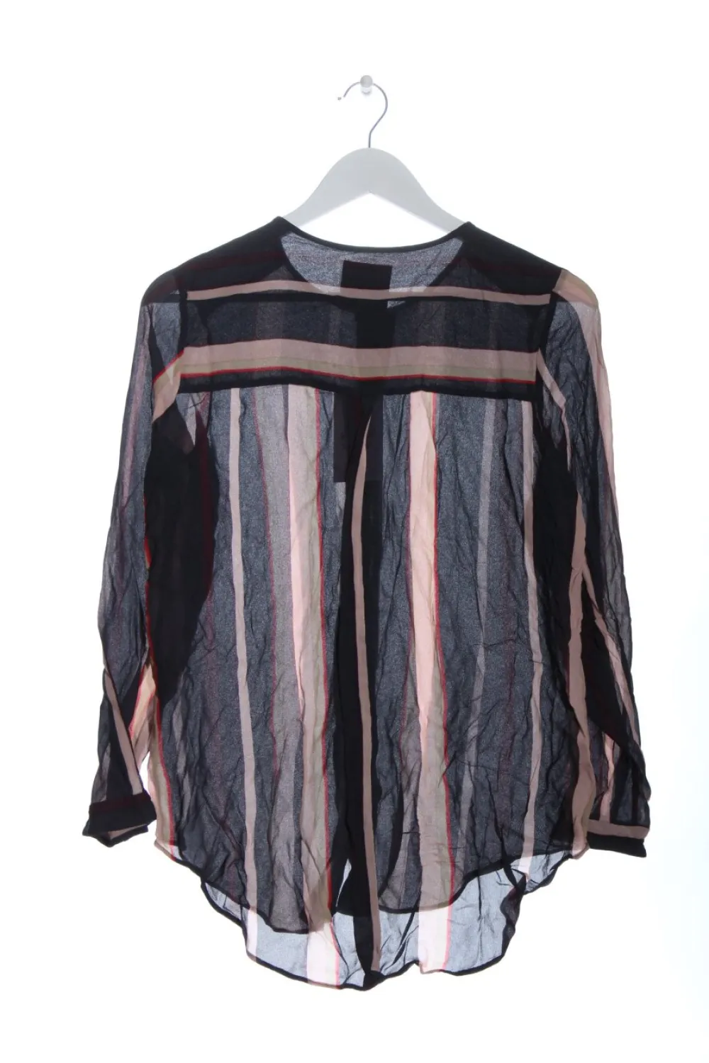 - Rundhalsausschnitt, Knopfverschluss am Ärmelsaum, Streifenmuster, Casual-Look, Transparenz-Optik