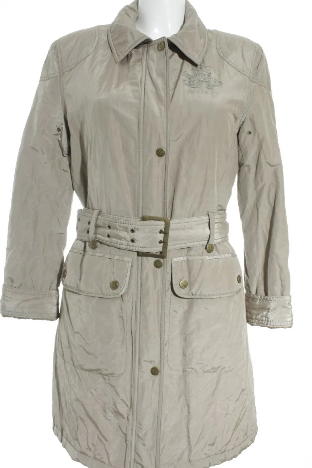 - Details: , gefüttert, wattierte Fütterung (dünn), Gürtelschlaufen, sichtbare Handstich-Nähte, Ziernähte, Stickereiverzierung, antikgoldfarbene Details