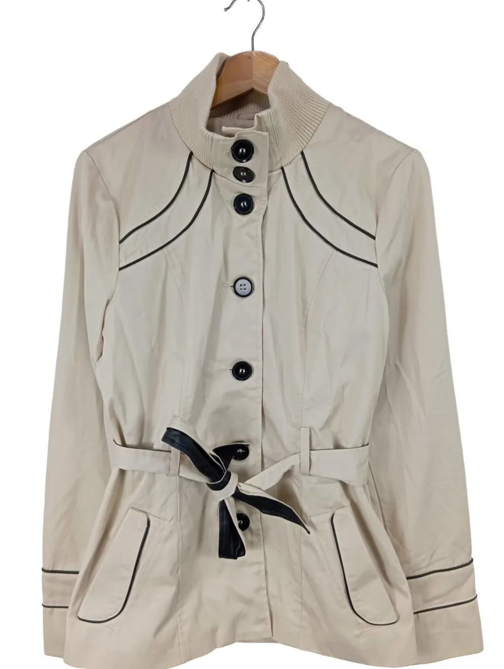 - Stehkragen, Bund am Ärmelsaum, Knopfverschluss, Schleifenverschluss, Pattentaschen, Casual-Look, schlichter Stil, Street-Fashion-Look