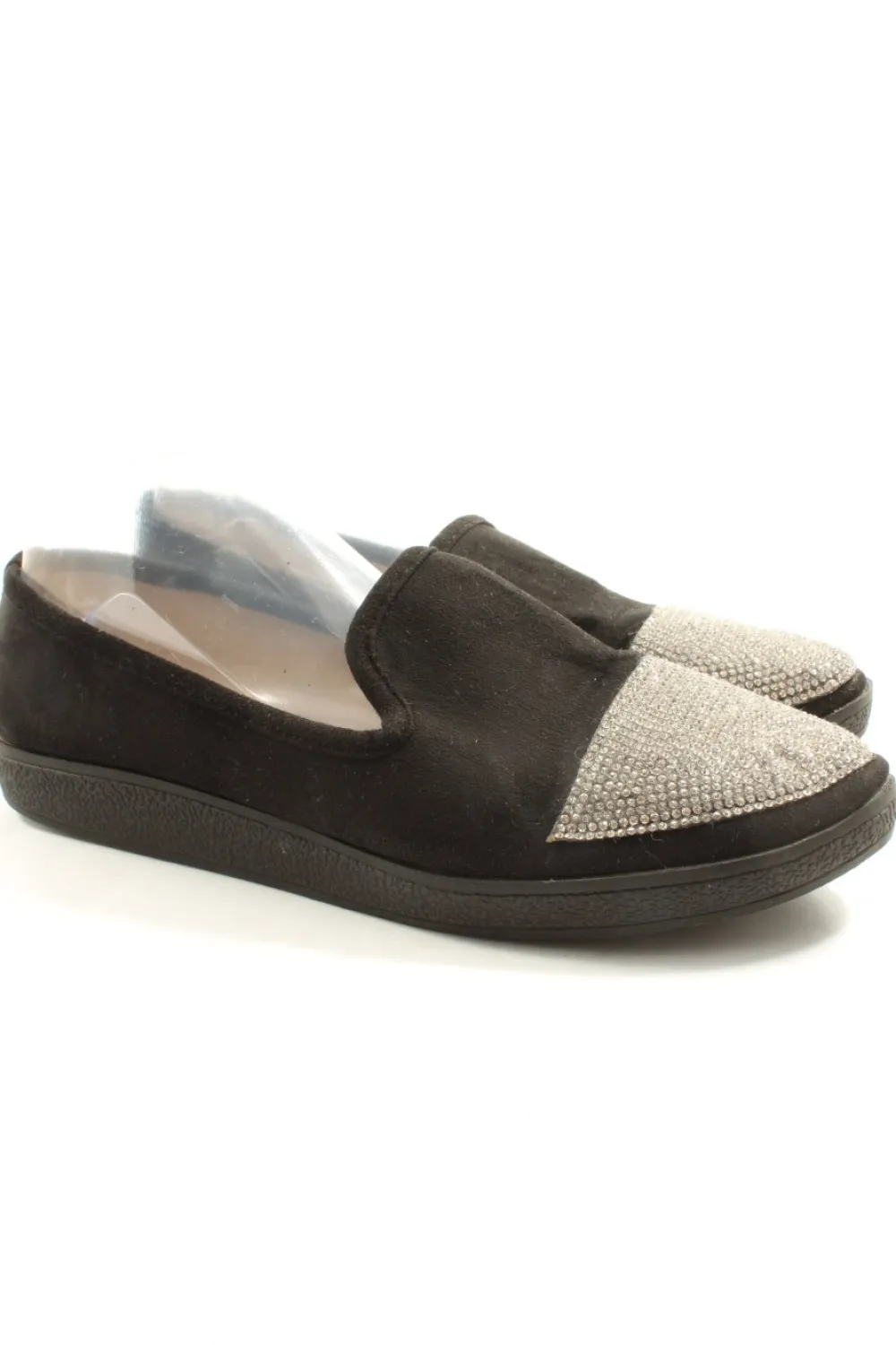 - genoppte Laufsohle, runde Schuhspitze, Schlupfeinstieg, Schriftzug gestickt, Casual-Look, Glanz-Optik, Street-Fashion-Look
