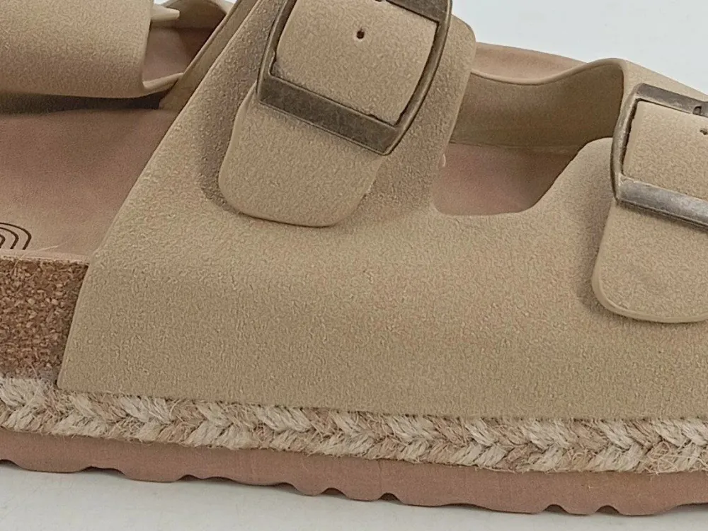 - Modell: Zweiriemer Pantolette mit Schnallen und Bastsohle