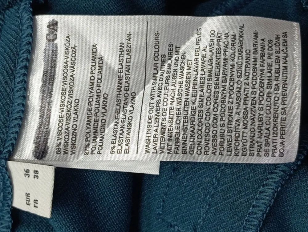 - Außenmaterial: 68% Viskose, 27% Polyamid, 5% Elasthan