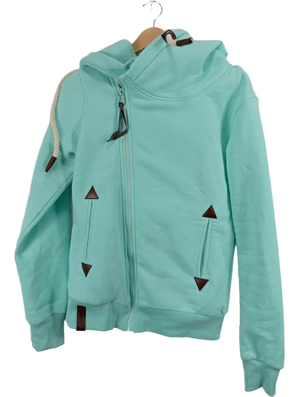 - Akzente: Kapuze, Lederdetails, Reißverschluss