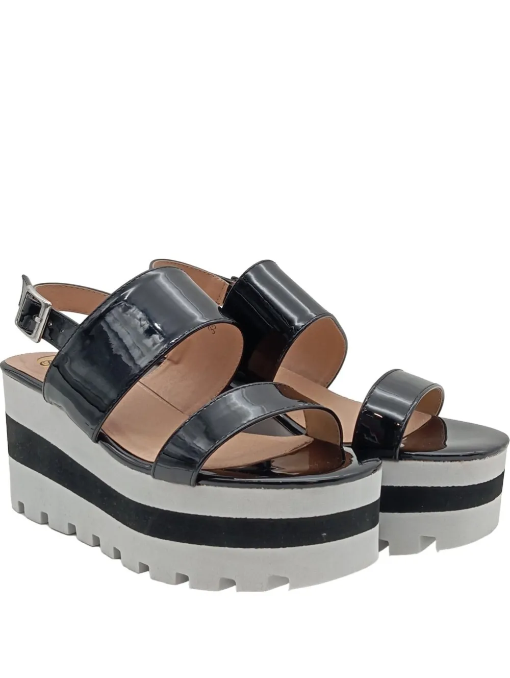 - genoppte Laufsohle, offene Schuhspitze, Riemenverschluss, Casual-Look, Elegant, schlichter Stil