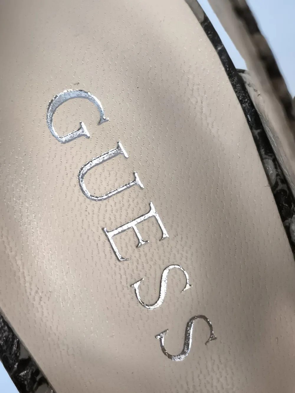 - Guess High Heel Sandaletten, creme-schwarz Animalmuster