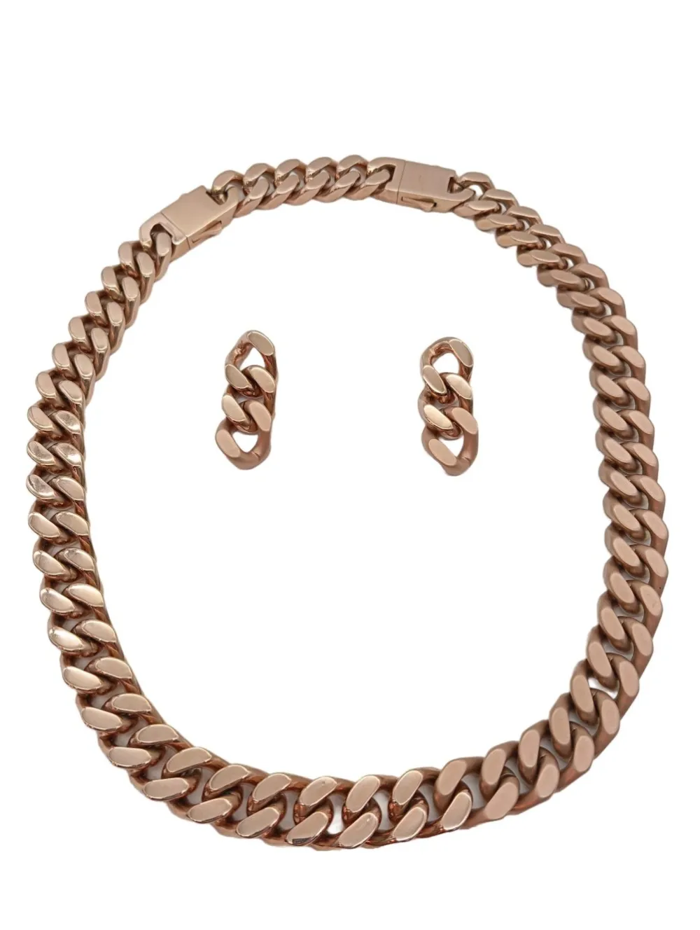 - Details: goldfarbiges Material, matt glänzendes Material, grobgliedrige Kette, kleine Anhänger