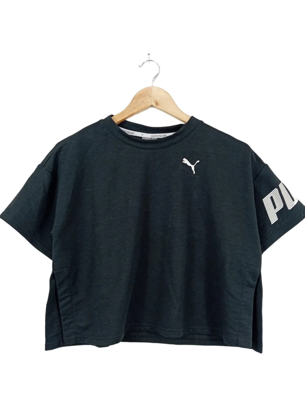 - Puma Cropped Shirt, schwarz Motivdruck
