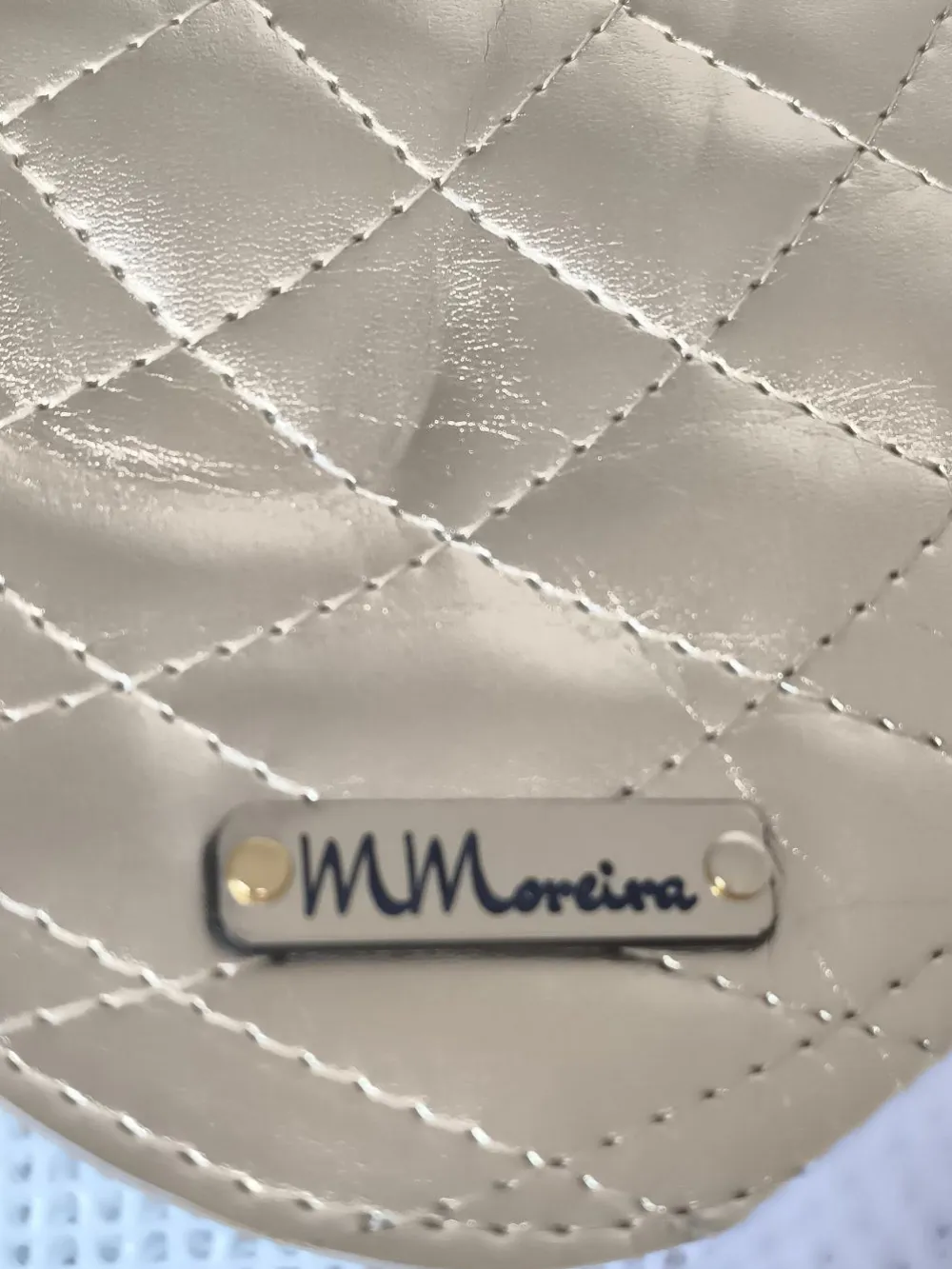 - Shopper, weiß-goldfarben Steppmuster