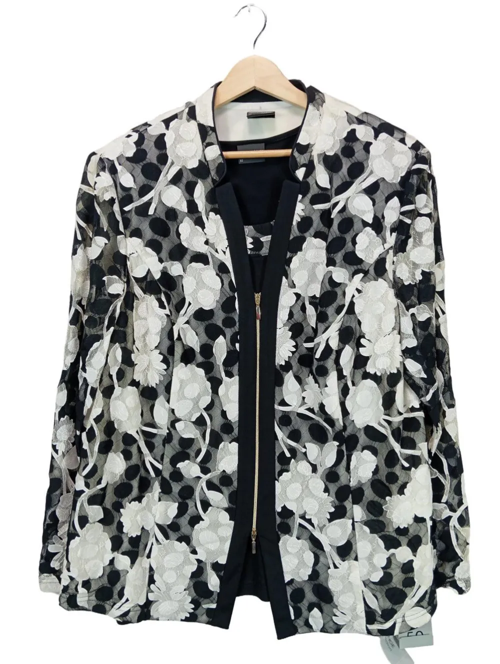 - Hermann Lange Strick Twin Set, weiß-schwarz Allover-Druck