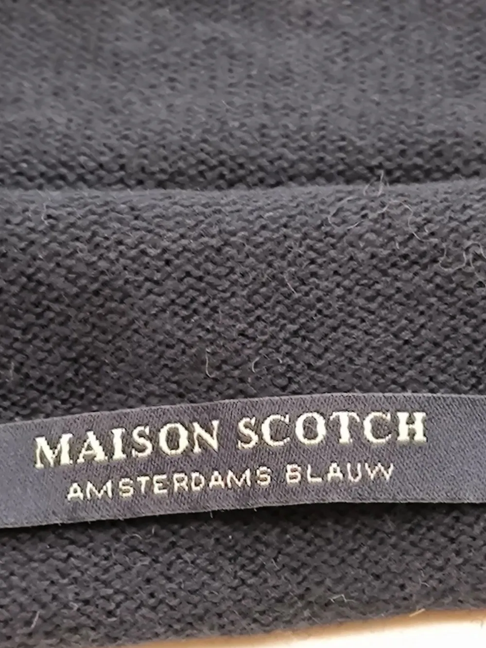 - Maison Scotch Strickmütze, schwarz Zopfmuster