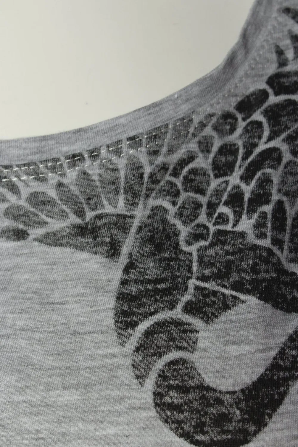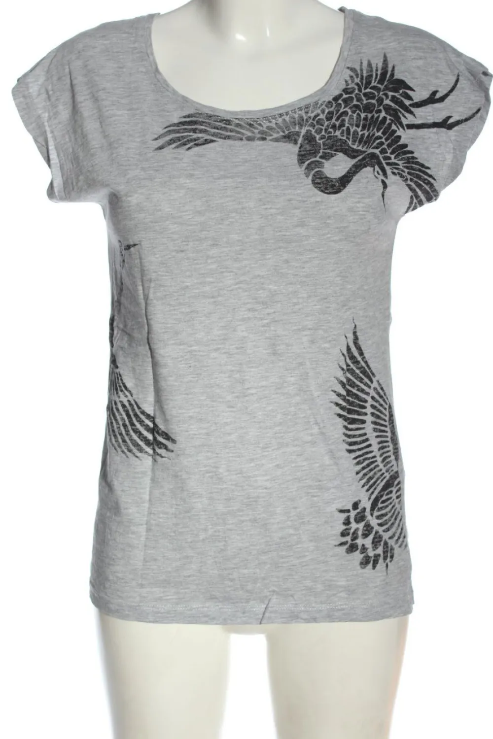 - U-Ausschnitt, Ärmelsaumaufschlag, meliert, Motivdruck, Casual-Look, Street-Fashion-Look