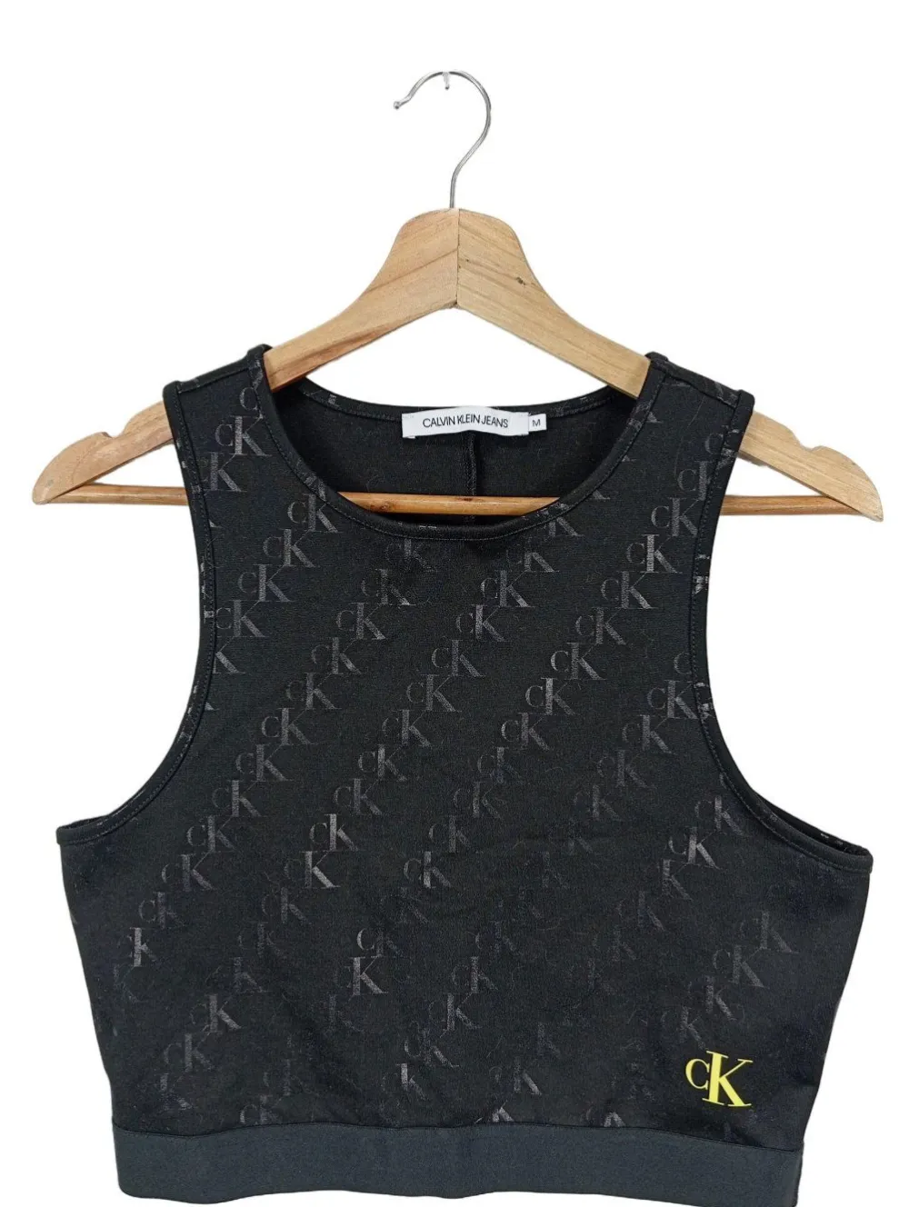 - Calvin Klein Cropped Top, schwarz Allover-Druck