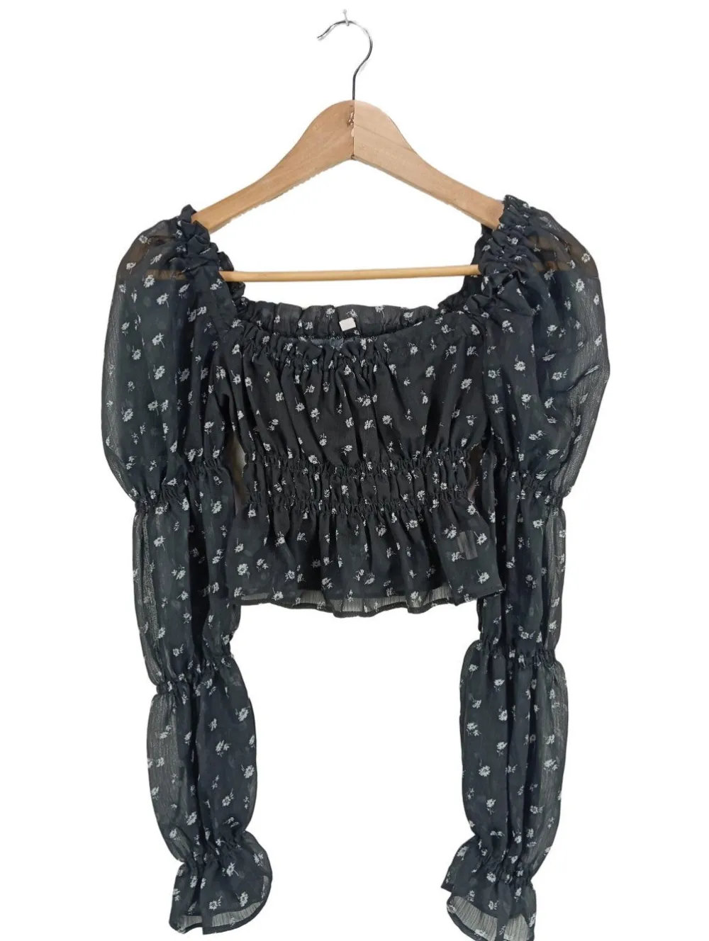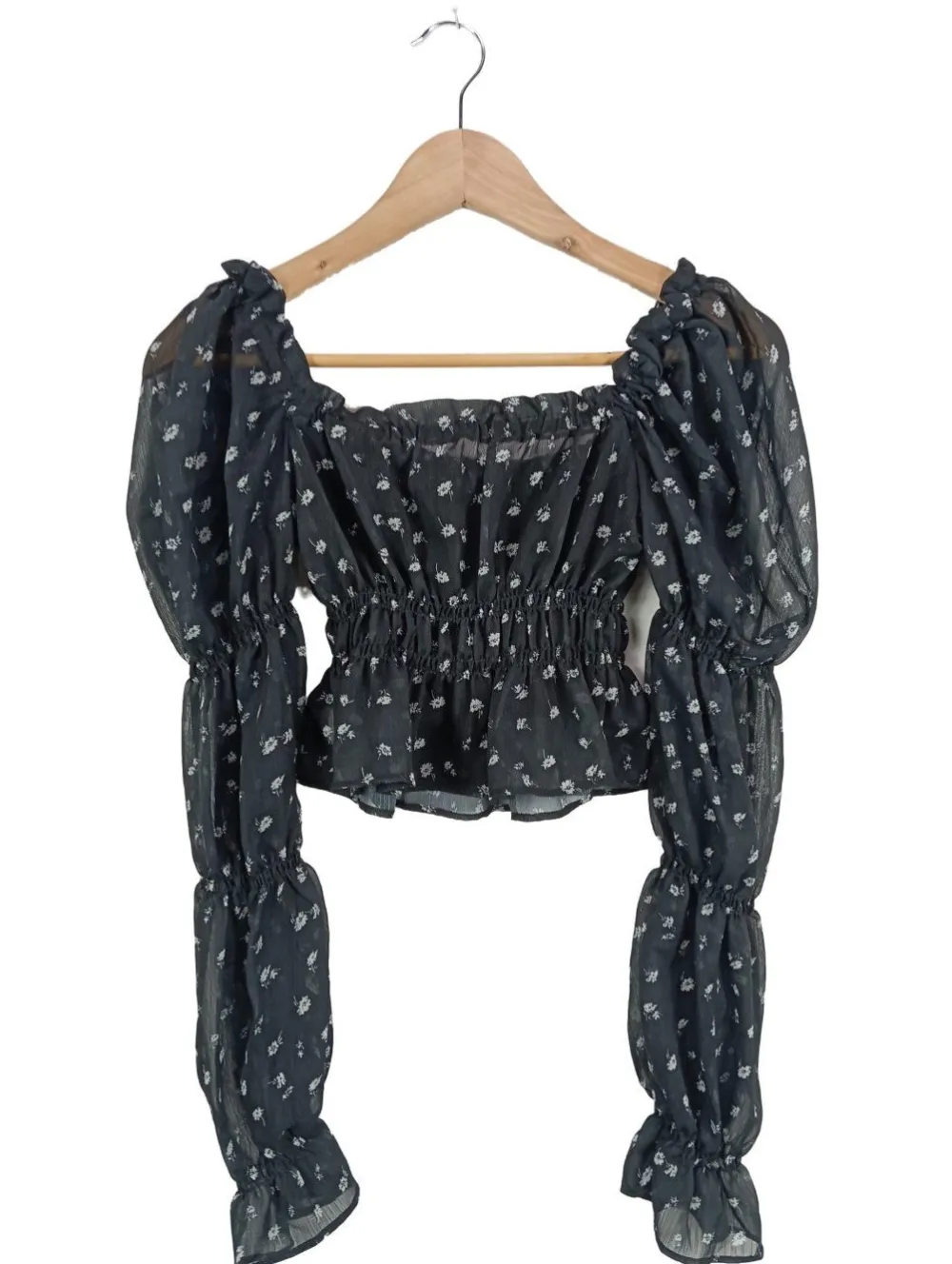 - schulterfrei, Raffung am Ärmelsaum, Allover-Druck, Blumenmuster, Casual-Look, Elegant, Transparenz-Optik