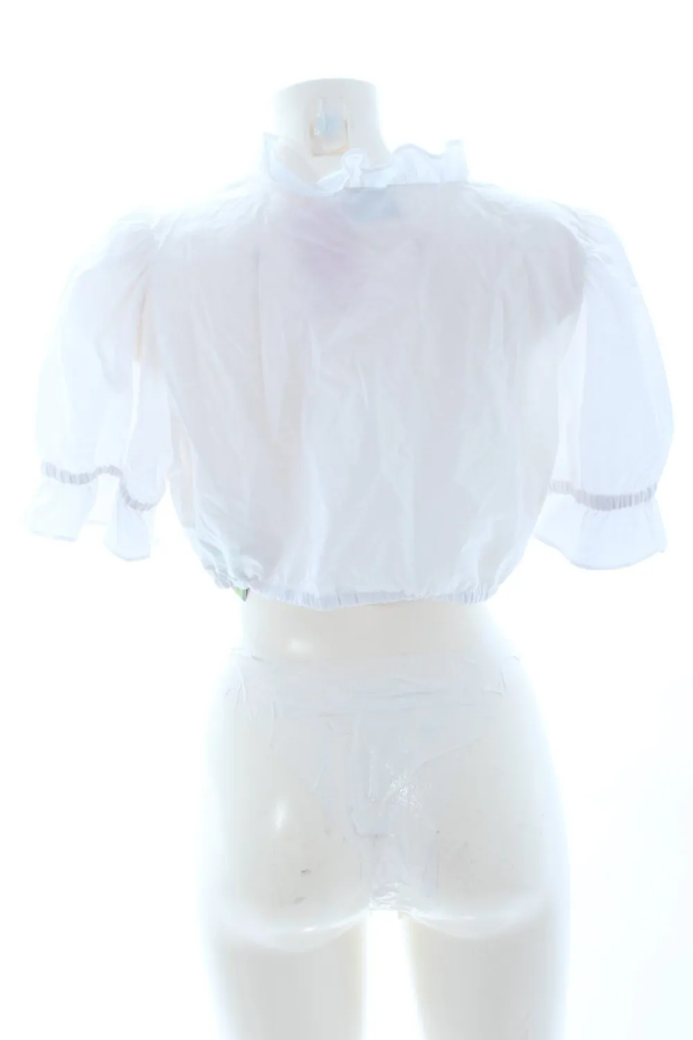 - Herz-Ausschnitt, Rüschenkragen, Rüschen am Ärmelsaum, Knotenverschluss, Allover-Druck, Webmuster, Elegant, Transparenz-Optik