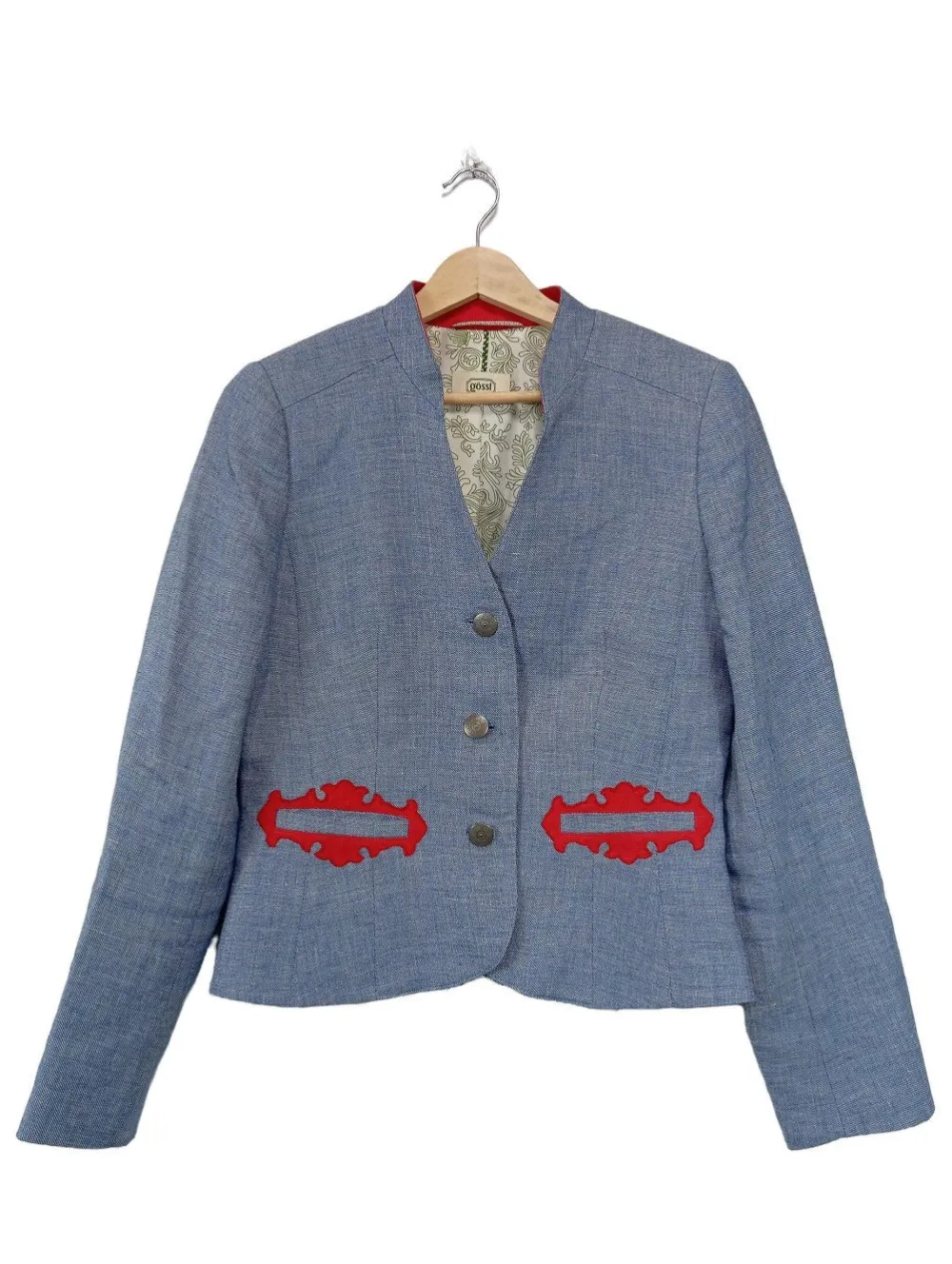 Schreibe die erste Bewertung für „Trachtenmode>gu00f6ssl Trachtenjacke Größe 38 blau“