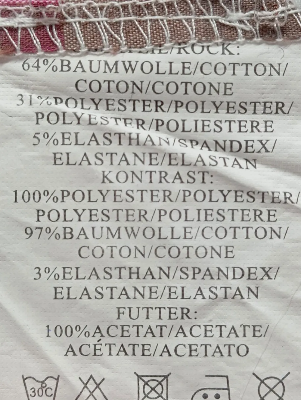 - Außenmaterial: 64% Baumwolle, 31% Polyester, 5% Elasthan