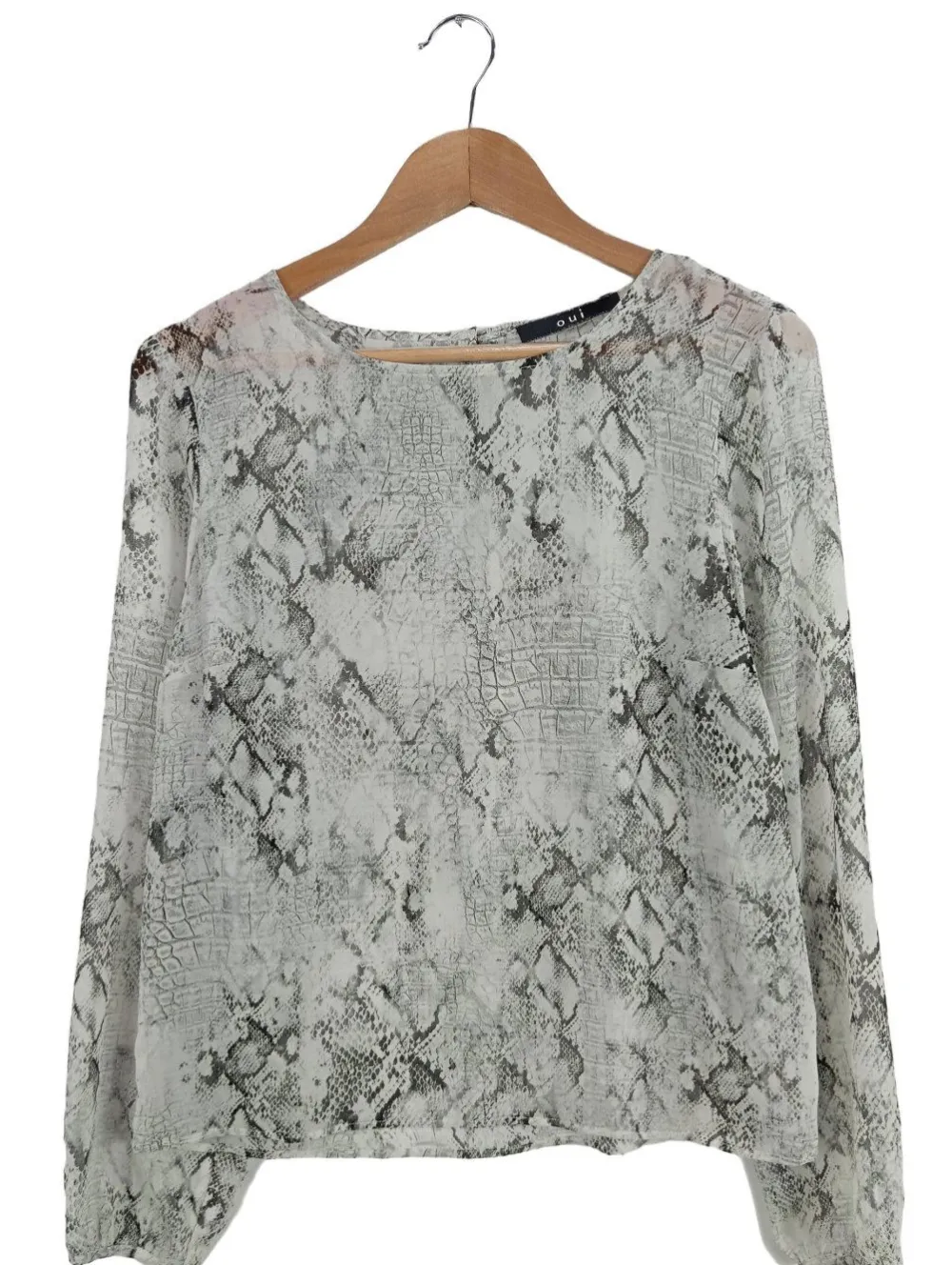 - Oui Transparenz-Bluse, hellgrau Allover-Druck