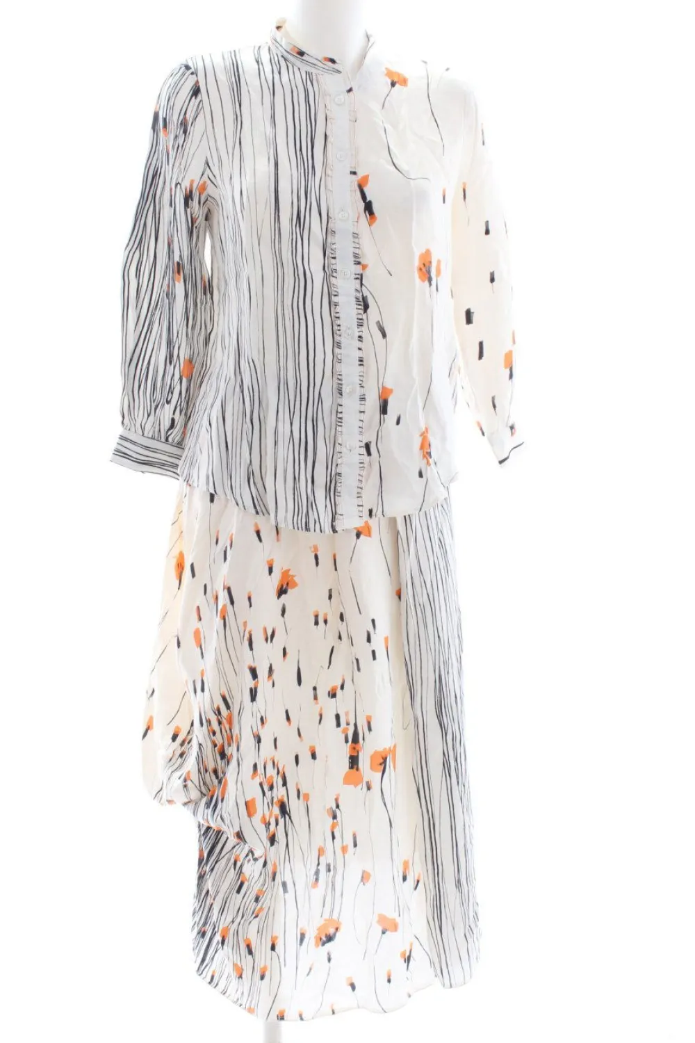 - Rundhalsausschnitt, Stehkragen, Knopfverschluss am Ärmelsaum, Knopfverschluss, Allover-Druck, Motivdruck, Casual-Look, schlichter Stil