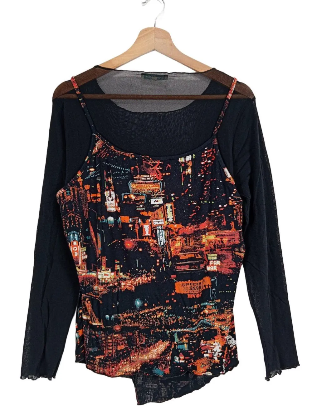 - U-Boot-Ausschnitt, Wellkanten am Ärmelsaum, Allover-Druck, Casual-Look, Elegant, Transparenz-Optik