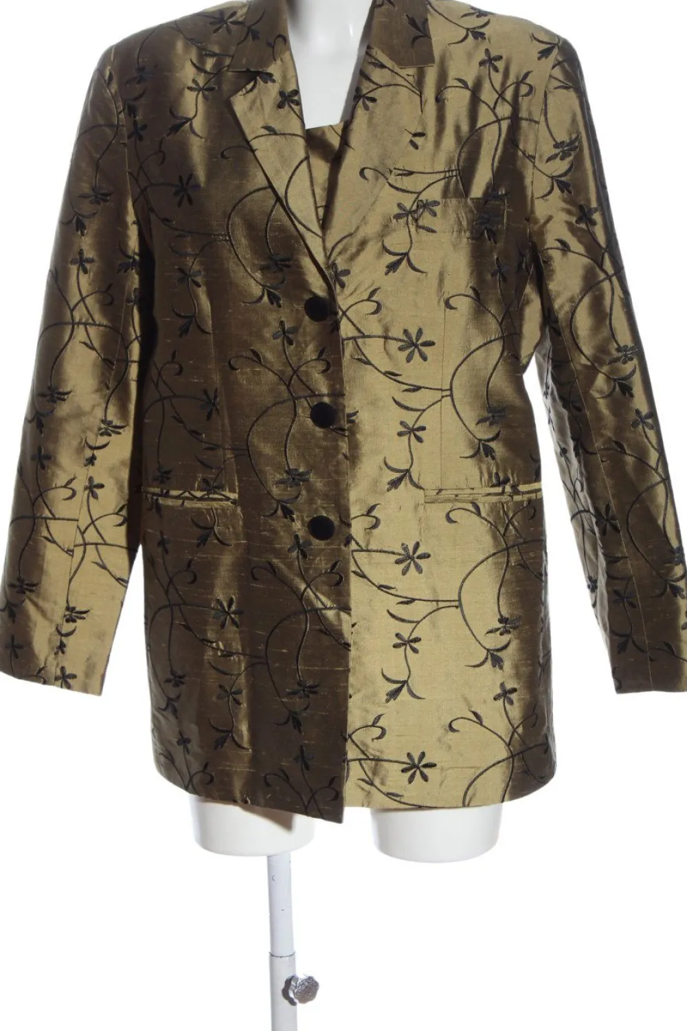 - V-Ausschnitt, Bund am Ärmelsaum, Knopfverschluss, Paspeltaschen, Blumenmuster, Elegant, Glitzer-Optik, Vintage-Look