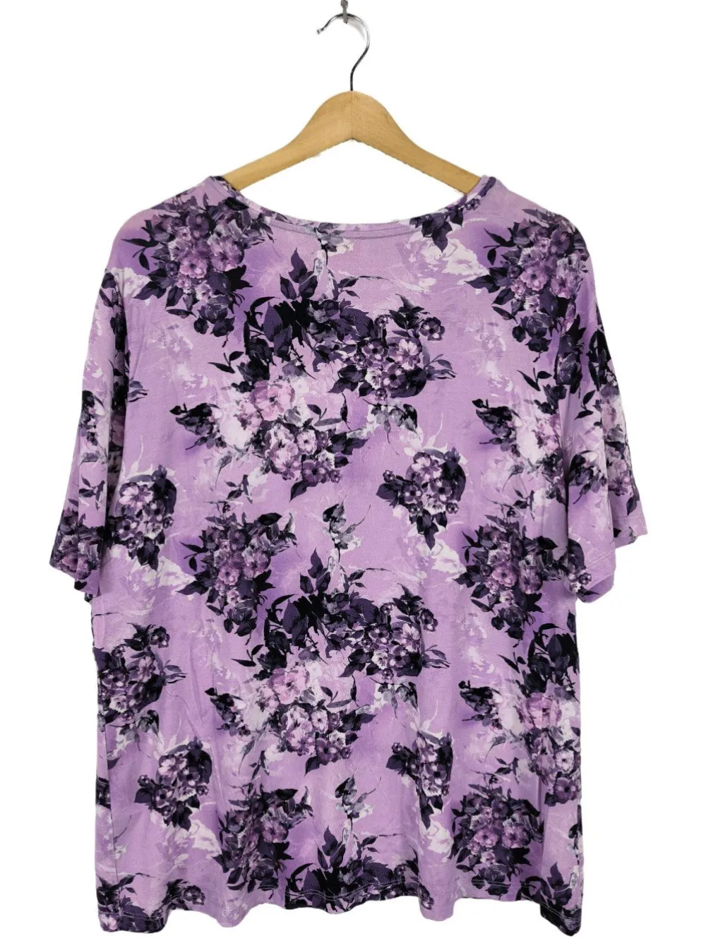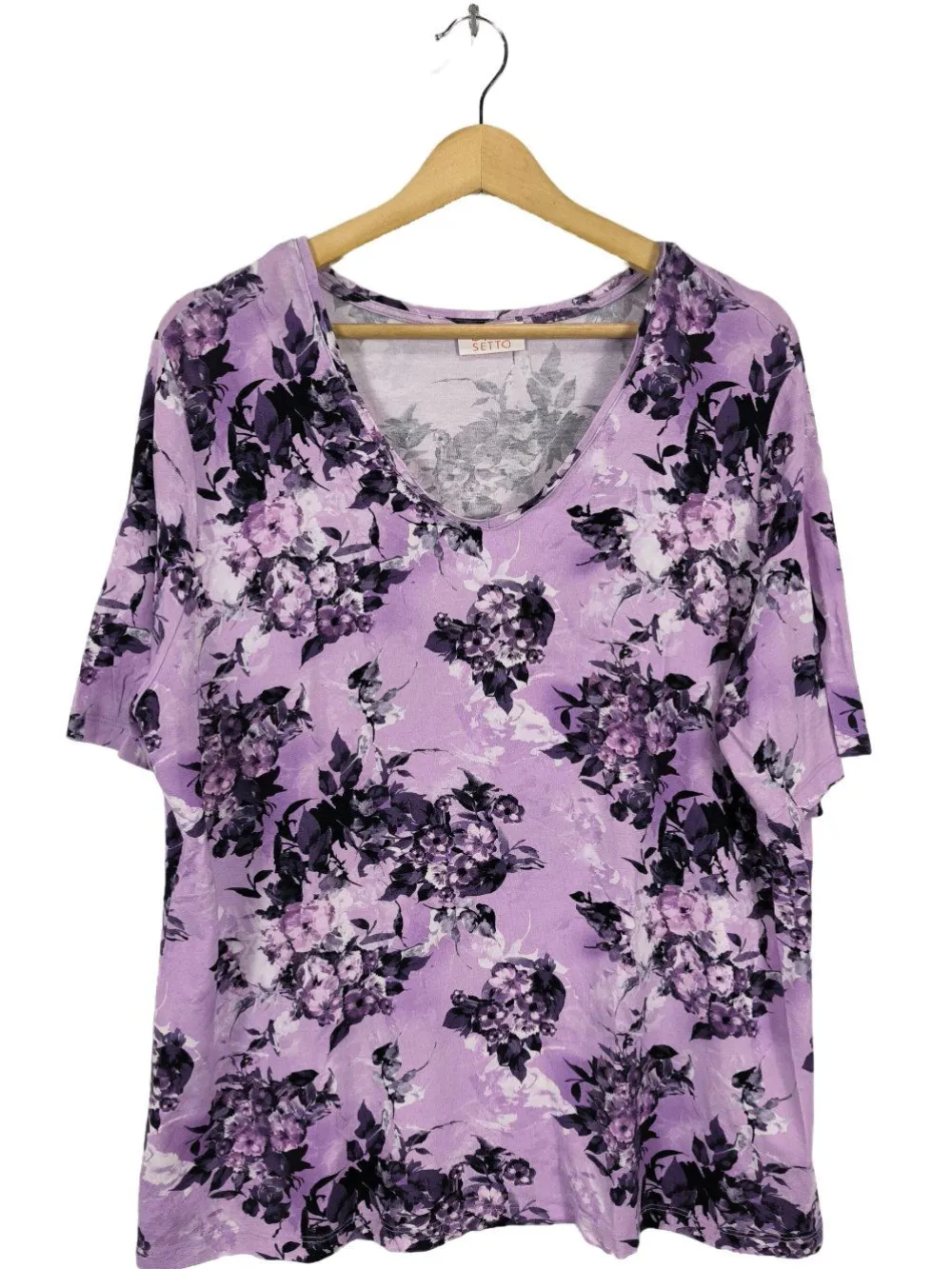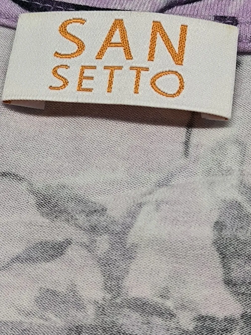 - San Setto V-Ausschnitt-Shirt, lila-schwarz Allover-Druck