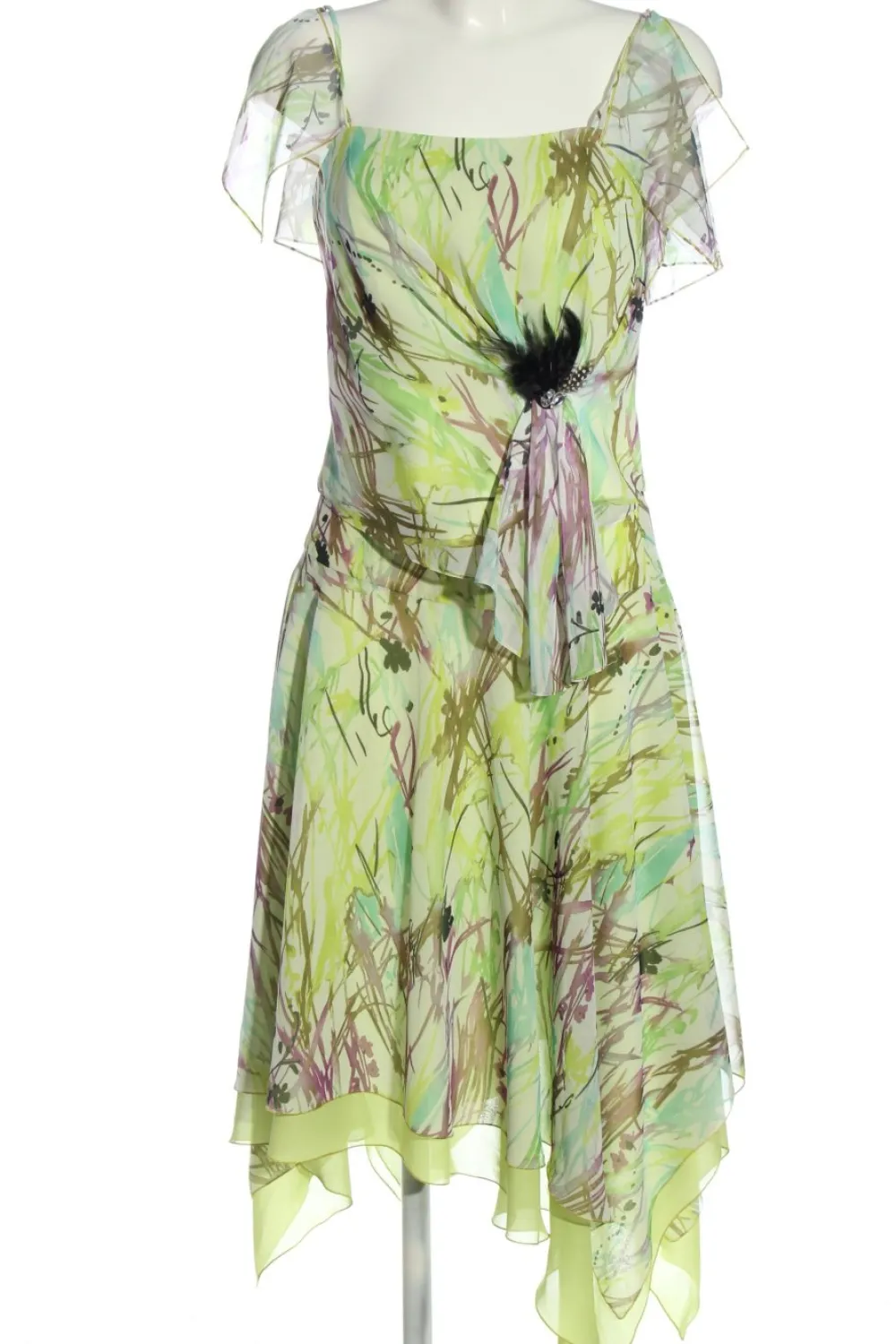 - Kareeausschnitt, Reißverschluss hinten, abstraktes Muster, Elegant, Party-Look